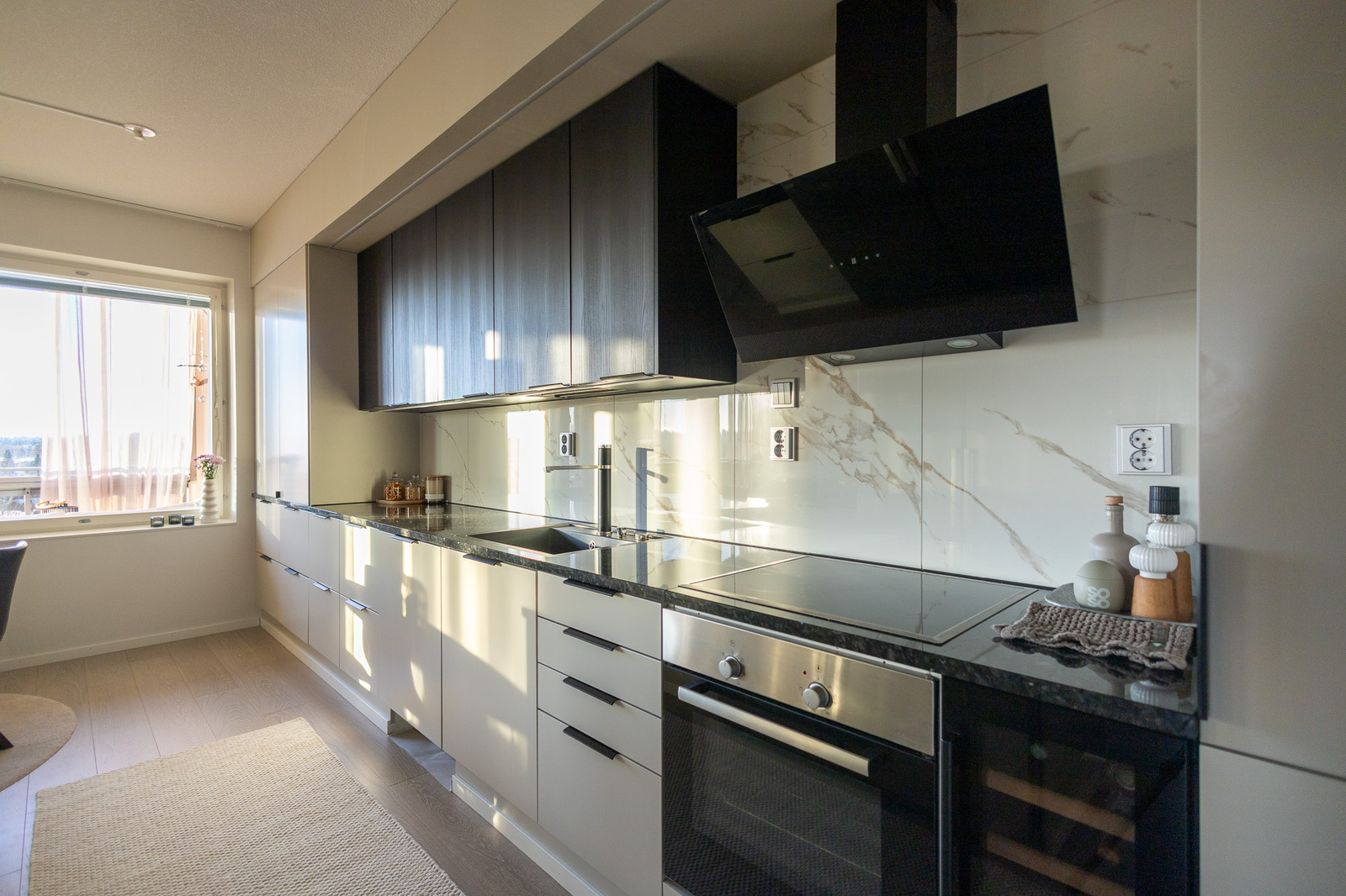 Mikäli etsit muuttovalmista ja tyylikästä ylimmän kerroksen huoneistoa hyvien palvelujen läheltä niin nyt tuli tarjolle koti, johon sinun on helppo ihastua! Tarjolla 90,5 m2 suuruinen valoisa kulmahuoneisto Jouppilankulman ylimmästä 8. kerroksesta. Huoneistossa täyttyy moni asia, joita varmasti arvostat arjessa. Heti huoneistoon tultaessa aukeaa avara eteinen, jonka vieressä erillinen wc. Tyylikäs ja toimiva keittiö on remontoitu vuonna 2023 ja keittiössä on todella paljon säilytystilaa sekä upea valaistus. Huoneistossa on kolme makuuhuonetta, joista kahdessa on vaatehuone. Yksi huoneista on varustettu lisäksi tyylikkäällä kiinteällä kaapistolla. Olohuoneen ja keittiön jatkeena on koko huoneiston levyinen lasitettu parveke, josta esteettömät näkymät kauas Jouppilan pientaloalueen yli ja upeat ilta-aurinkomaisemat. Kylpyhuoneessa on reilusti kodinhoitotilaa sekä wc. Suihkutila ja sauna järkevästi erillään näistä. Isossa makuuhuoneessa on lisäksi toinen lasitettu parveke lähellä kylpyhuonetta. Taloyhtiö on loistavalla sijainnilla lähellä monipuolisia Joupin, Framin sekä keskustan alueen palveluja ja työpaikkoja. Framin alueella pelkästään noin 1000 työpaikkaa. Jouppilankulmasta pyöräilet tuossa tuokiossa asioimaan Ideaparkiin tai keskustaan. Lisäksi viihtyisät jokivarren ulkoilualueet, ulkokuntosali sekä muut monipuoliset liikuntamahdollisuudet ovat ihan lähimaastossa. Framilta löydät mm. viihtyisät lounaspaikat ja kävellenkin olet tuossa tuokiossa Seinäjoen keskustassa. Asunnon käyttöön kuuluu irtaimistovarasto sekä lisäksi huoneistokaupan yhteydessä myydään erillinen lämmin varasto ja autohallipaikka omilla osakkeilla. Varaston velaton hinta on 5 000 € ja autohallipaikan velaton hinta on 20 000 €. Etätyöskentelijälle talossa on valmiina laajakaistayhteys, jonka perusnopeus on 25 M. Jouppilankulmassa asuessasi arki on helppoa ja huoletonta. Mikäli kiinnostuit ja haluat lisätietoja niin ota yhteyttä ja sovitaan esittely tähän upeaan kohteeseen! Juuso Lehto Ylempi kiinteistönvälittäjä YKV, LKV Auktorisoitu kiinteistöarvioitsija AKA/KHK Julkinen kaupanvahvistaja 0407146695 juuso.lehto@lakeuslkv.fi Lakeus LKV tekee asuntounelmistasi Seinäjoella totta! Harkitsetko asuntosi myyntiä? Haluatko ilmaisen hinta-arvion kodistasi? Varaa maksuton arviokäynti: https://www.lakeuslkv.fi