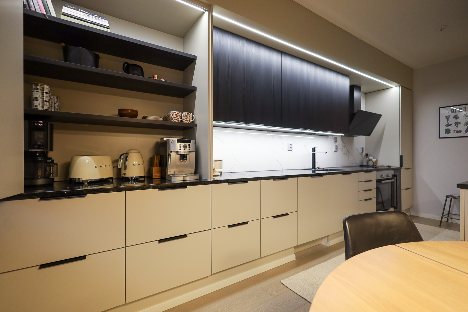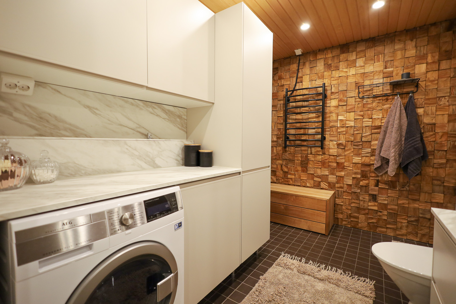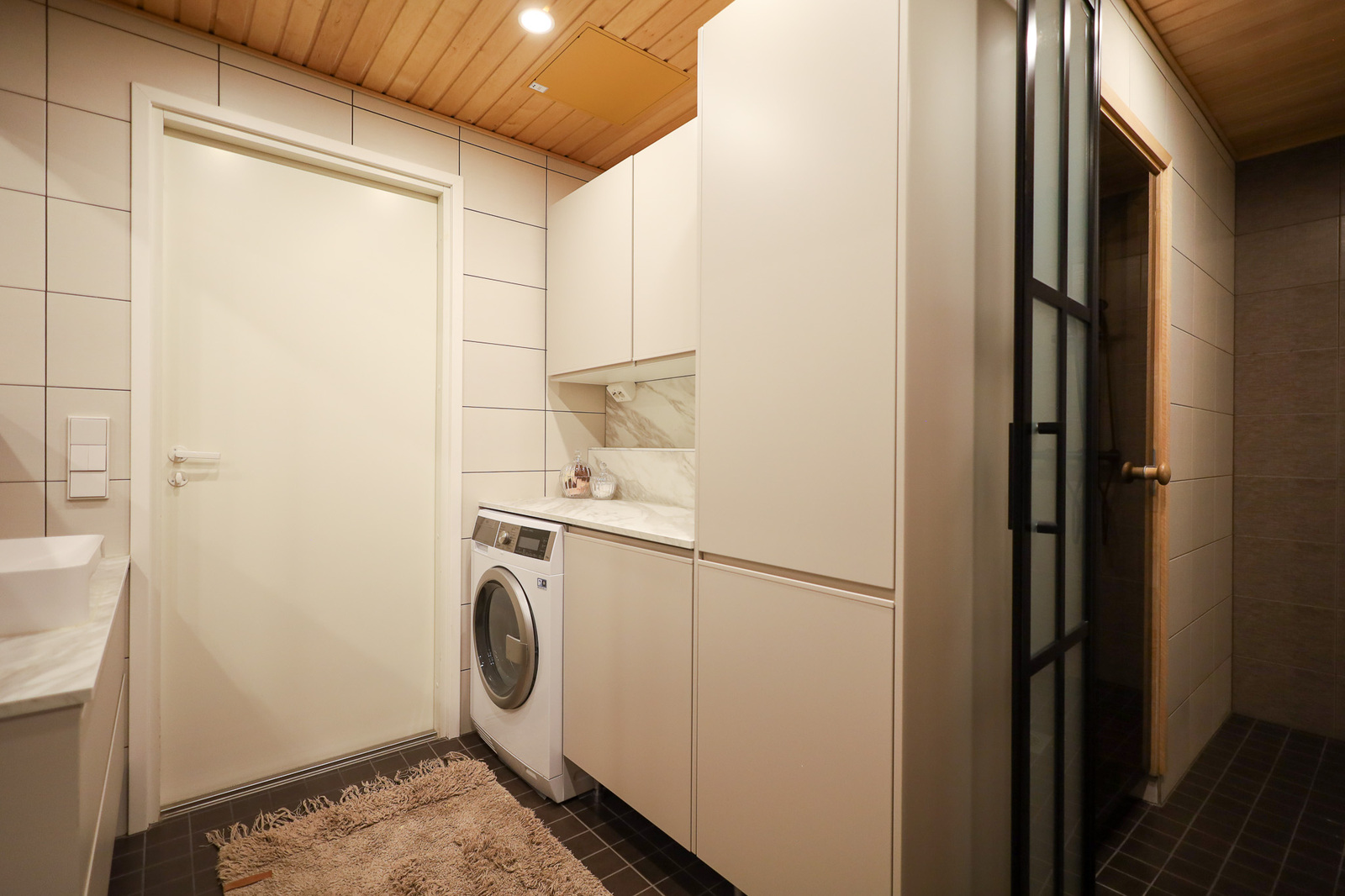 Pesukoneliitäntä, pyykkikaapit, pöytätaso