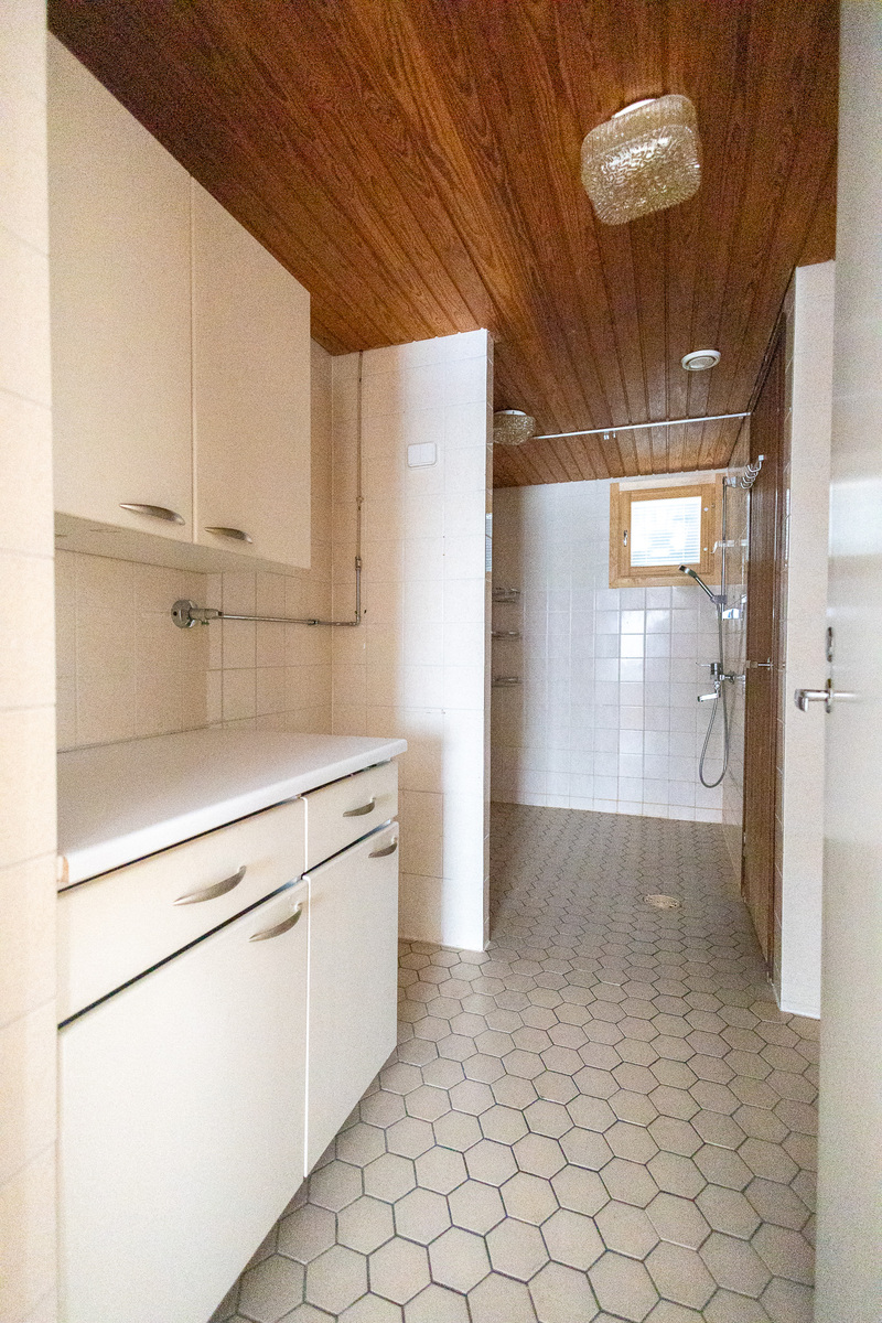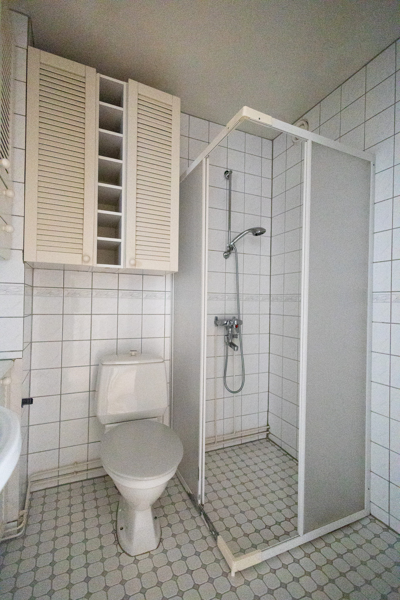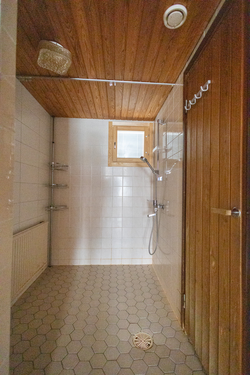 Pesukoneliitäntä, lattialämmitys, suihku, kylpyhuonekaapisto
